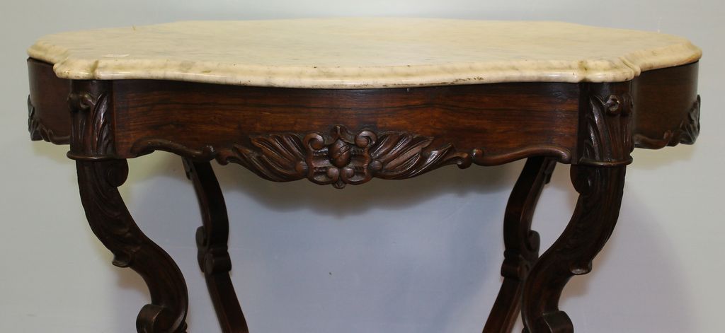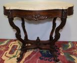 Rosewood carved turtle top marble top table.; 34 1/2" w., 29" h., 27" d. Rosewood carved turtle top marble top table.; 34 1/2" w., 29" h., 27" d.