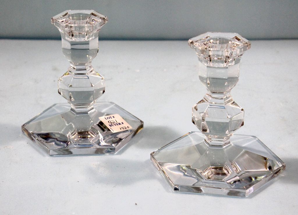 421 Pair Signed Val St. Lambert Glass Candlesticks