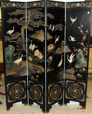 429 Four Panel Black Lacquer Oriental Style Screen