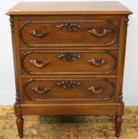 Walnut Victorian three drawer chest on turned legs.; 31" w., 37" h., 18" d. Walnut Victorian three drawer chest on turned legs.; 31" w., 37" h., 18" d.
