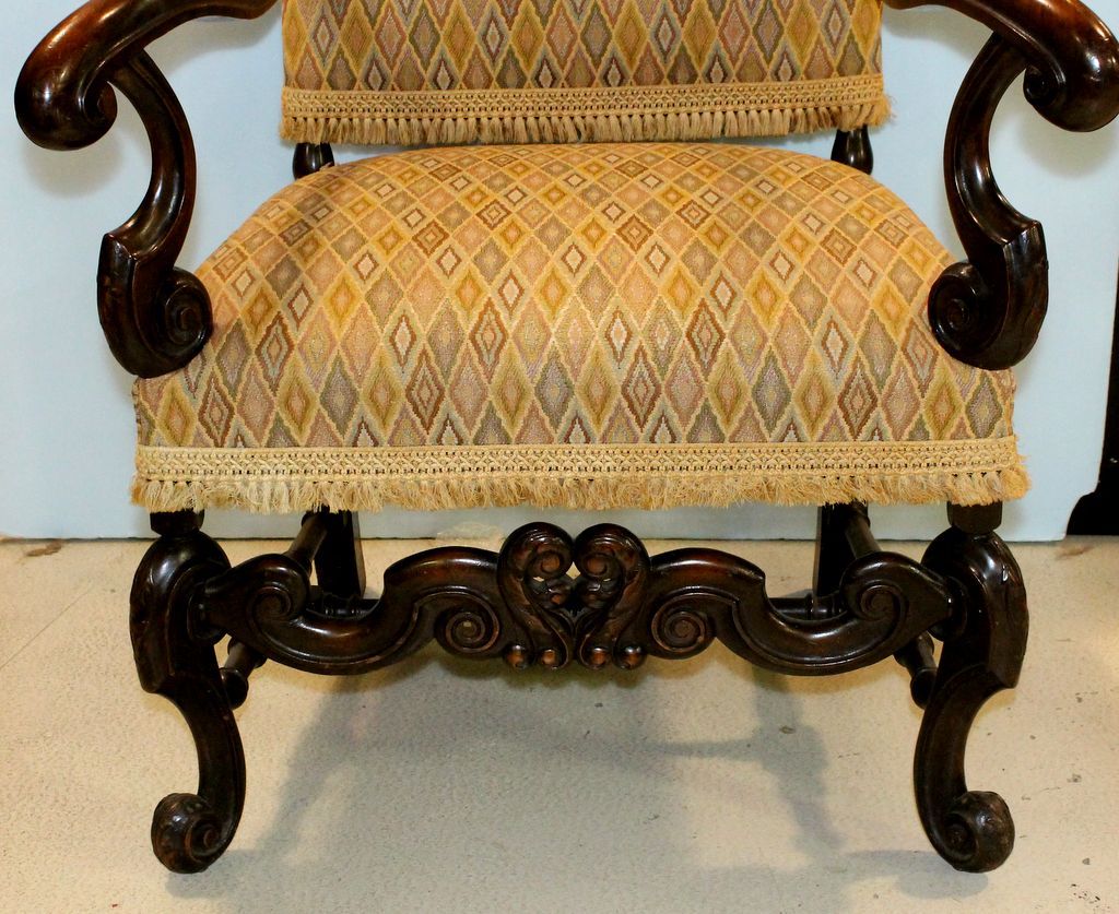 High back French Queen Anne walnut arm chair.; 52" h. High back French Queen Anne walnut arm chair.; 52" h.