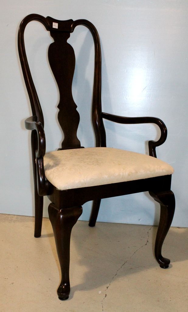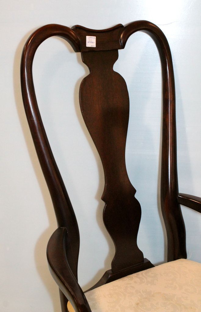Set of eight high back mahogany Queen Anne dining chairs.; 41" h. Set of eight high back mahogany Queen Anne dining chairs.; 41" h.