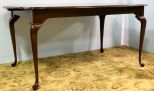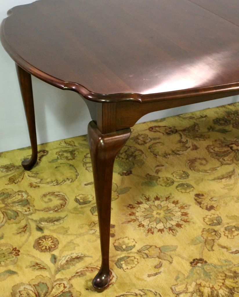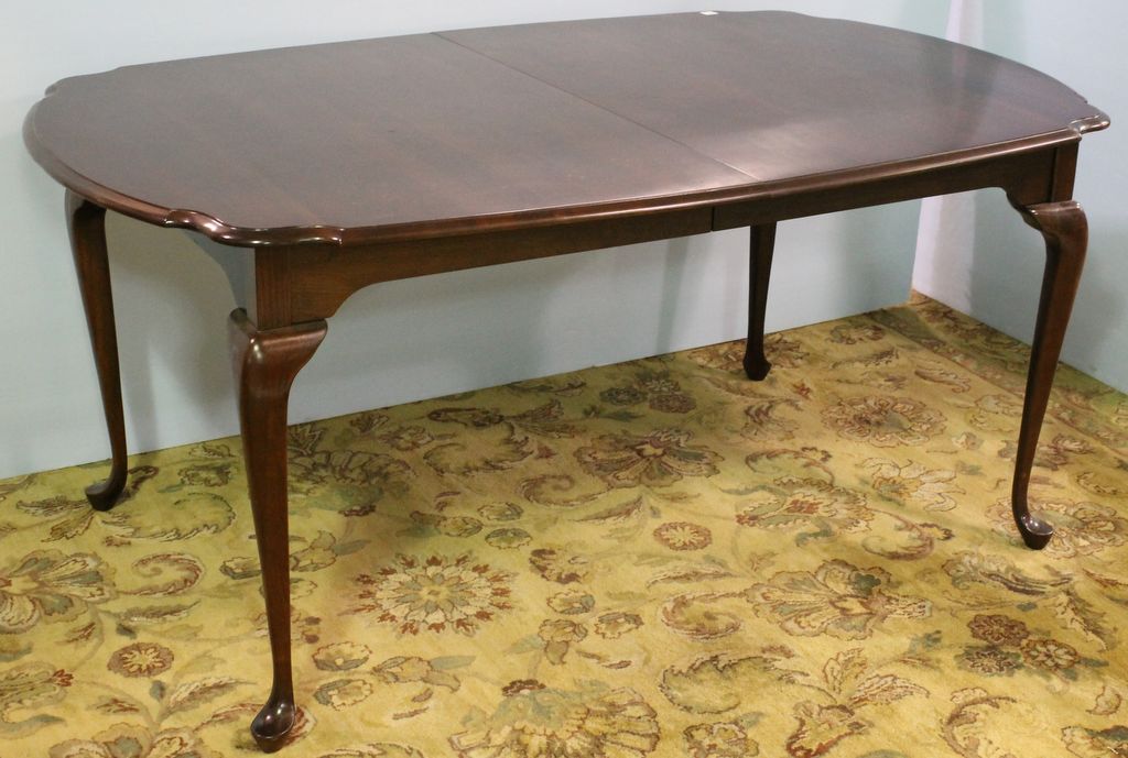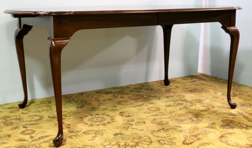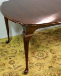 Mahogany Queen Anne dining table with two 15" w. skirted leaves.; 64" w., 29" h., 41" d. Mahogany Queen Anne dining table with two 15" w. skirted leaves.; 64" w., 29" h., 41" d.