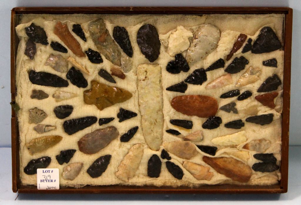 Case of Indian arrowheads.; 12 1/2" l., 8 1/2" w. Case of Indian arrowheads.; 12 1/2" l., 8 1/2" w.