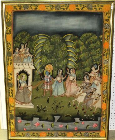 Hand painting of Tibetan scene on fabric.; 34" w., 46" h. Hand painting of Tibetan scene on fabric.; 34" w., 46" h.