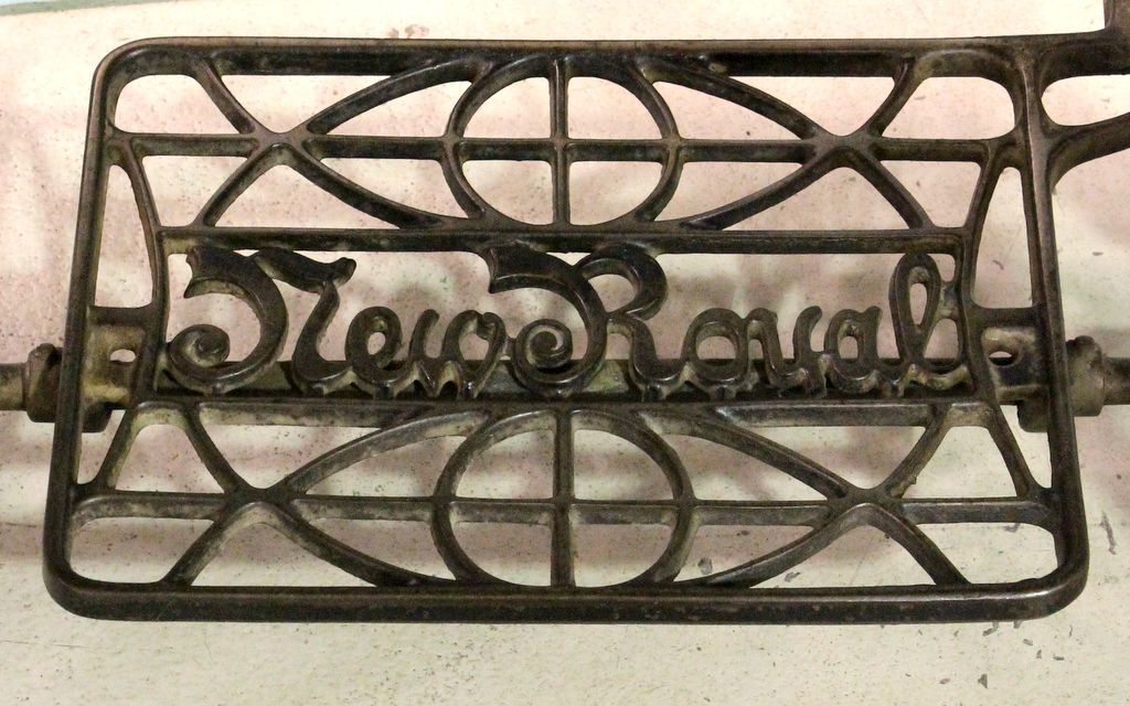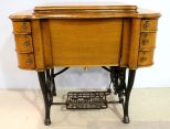 Victorian oak sewing machine with six drawers and iron base. New Royal sewing machine.; 33 1/2" w., 18 1/2" d., 30" h. Victorian oak sewing machine with six drawers and iron base. New Royal sewing machine.; 33 1/2" w., 18 1/2" d., 30" h.