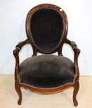 Victorian walnut finger mold ladies arm chair covered in velvet.; 24" w., 18" d., 36 1/2" h. Victorian walnut finger mold ladies arm chair covered in velvet.; 24" w., 18" d., 36 1/2" h.