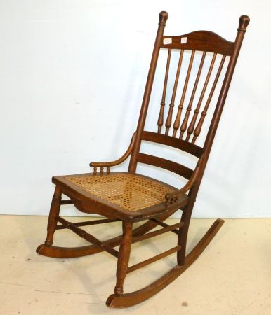 Turn of the century oak rocker with cane seat.; 18" w., 40" h. Turn of the century oak rocker with cane seat.; 18" w., 40" h.
