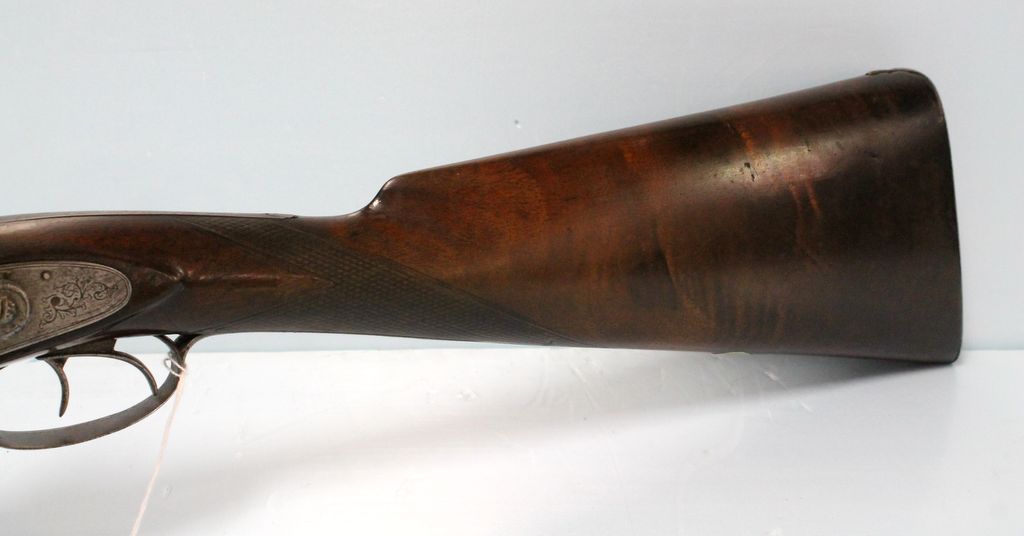 Beautiful finish, Damacus twist barrels, made in London, Hunting scene butt plate. Beautiful finish, Damacus twist barrels, made in London, Hunting scene butt plate.