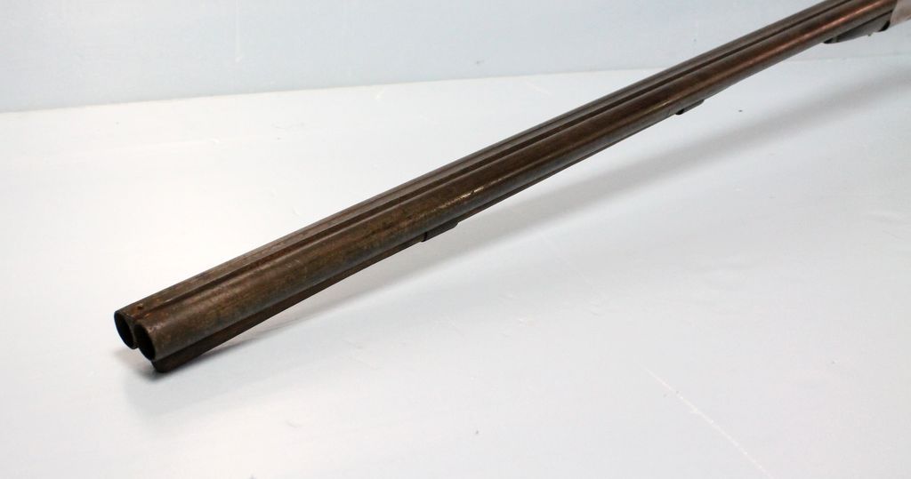 Thomas Parker Double Barrel Percussion Shotgun 12 ga., has original ram rod. Thomas Parker Double Barrel Percussion Shotgun 12 ga., has original ram rod.