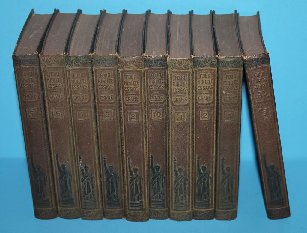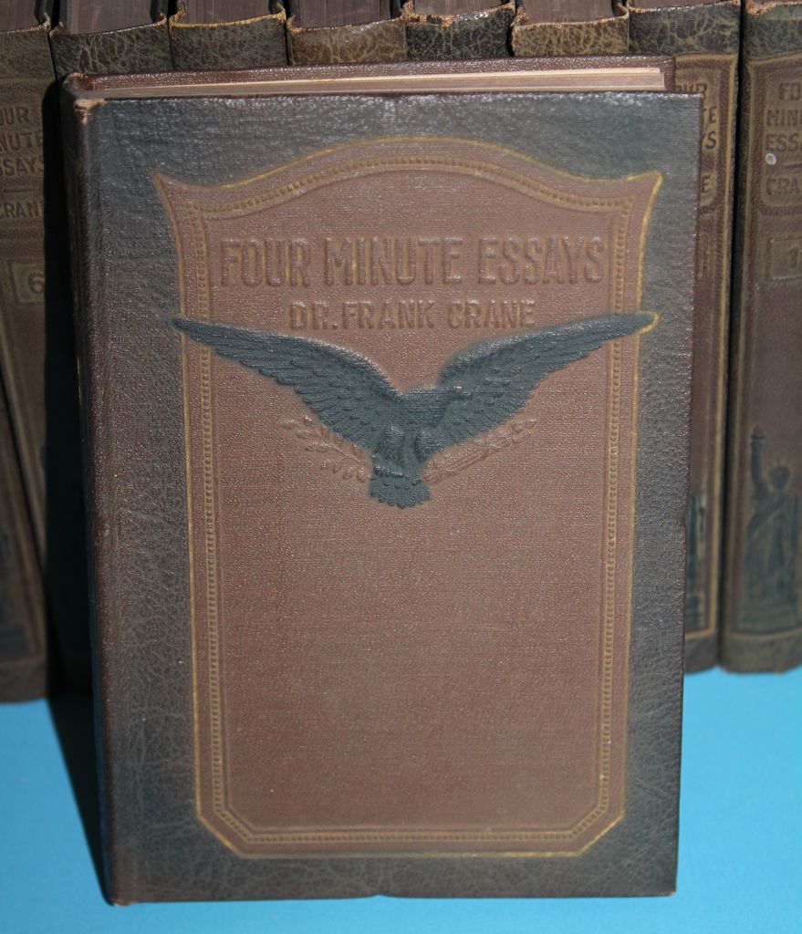 Set of Ten Small Four Minute Essays (books) by Dr. Frank Crane, copyright 1919, leather bound hardcover. Set of Ten Small Four Minute Essays (books) by Dr. Frank Crane, copyright 1919, leather bound hardcover.