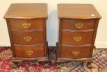 Pair of Three Drawer Chippendale Style Bedside Tables, 17"w., 14"d., 7"w. Pair of Three Drawer Chippendale Style Bedside Tables, 17"w., 14"d., 7"w.