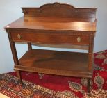 Early 20th Century Quarter Sawn Oak Server in the Hepplewhite style, having long center drawer over shelf with carved back splash, 40"w., 19"d., 42"h. Early 20th Century Quarter Sawn Oak Server in the Hepplewhite style, having long center drawer over shelf with carved back splash, 40"w., 19"d., 42"h.