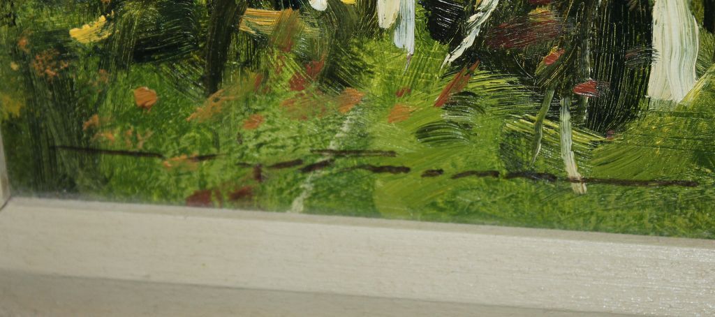 Oil On Masonite "October" signed Alan Flatmann, New Orleans (known for his pastels), dated 1977 on back, 22"w., 18"h. Oil On Masonite "October" signed Alan Flatmann, New Orleans (known for his pastels), dated 1977 on back, 22"w., 18"h.