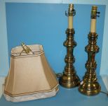 Pair of brass lamps with expensive "Ole yo Lamp Shade" shades, 22"h. Pair of brass lamps with expensive "Ole yo Lamp Shade" shades, 22"h.