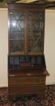 Mahogany with string inlay Chippendale style bookcase over fall front desk, three drawers, bracket feet, and fitted interior, 30"w., 18"d., 80"h. Mahogany with string inlay Chippendale style bookcase over fall front desk, three drawers, bracket feet, and fitted interior, 30"w., 18"d., 80"h.