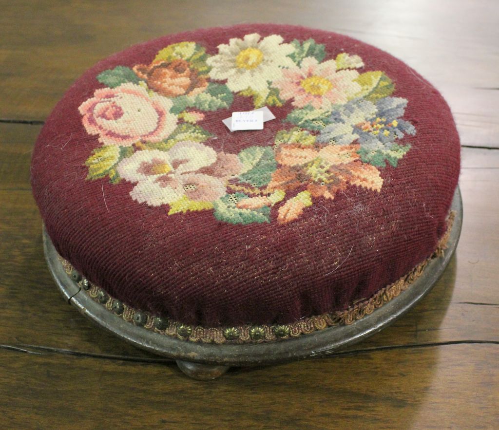 Victorian Needlepoint Stool, 14"dia. Victorian Needlepoint Stool, 14"dia.