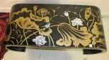 Small bench hand painted with birds, flowers, and gold foliage, 40"w., 17"d., 14"h. Small bench hand painted with birds, flowers, and gold foliage, 40"w., 17"d., 14"h.