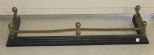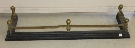 Black iron base, brass gallery fire fender, 45"w., 15"d., 7"h. Black iron base, brass gallery fire fender, 45"w., 15"d., 7"h.