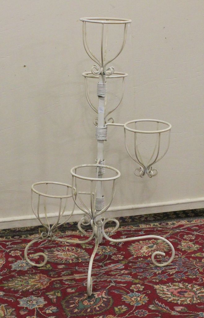 Scroll leg five flower pot holder iron stand, 43"h. Scroll leg five flower pot holder iron stand, 43"h.
