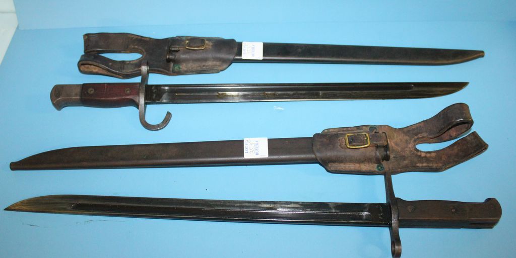 Two Japanese WWII Bayonets and Scabbards, 21"L. Two Japanese WWII Bayonets and Scabbards, 21"L.
