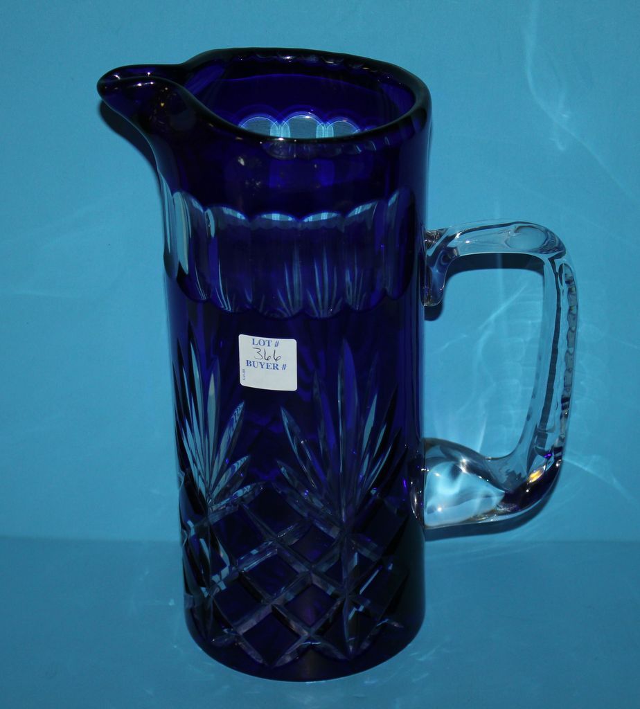 Blue Cut to Clear Crystal Pitcher, 11"h. Blue Cut to Clear Crystal Pitcher, 11"h.