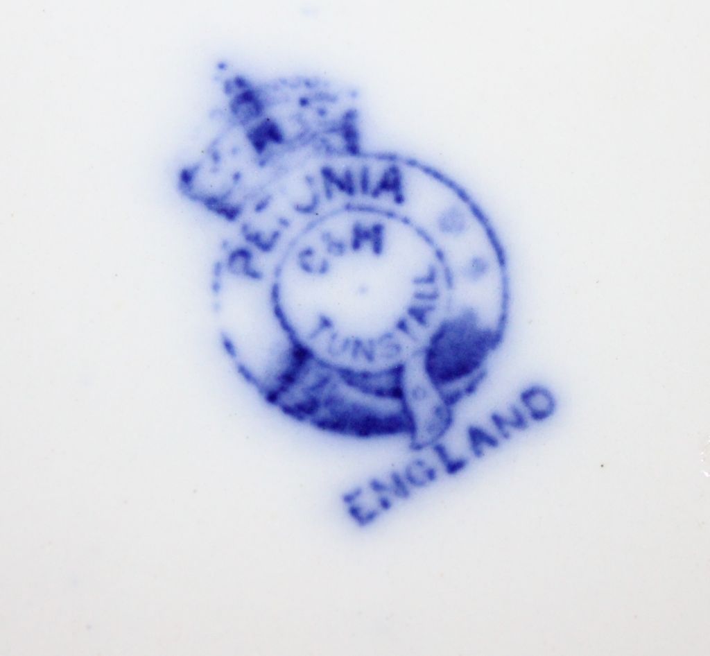 Petunia England Transferware Bowl with blue flowers and gold trim. Petunia England Transferware Bowl with blue flowers and gold trim.