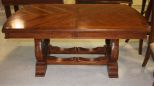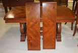 Modern Dining Table, pedestal legs/top slides, 2 leaves 12"w., good condition, matches lot 585, 586, and 588. 72"L, 44"w., 30"h. Modern Dining Table, pedestal legs/top slides, 2 leaves 12"w., good condition, matches lot 585, 586, and 588. 72"L, 44"w., 30"h.