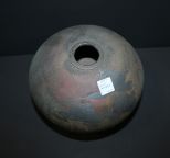 Signed art pottery vase with sand finish and decorated with frogs; 9" dia., 10" h. Signed art pottery vase with sand finish and decorated with frogs; 9" dia., 10" h.