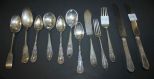 Includes Whiting "Madame Jumel" lunch fork 6 1/2" ; two large tablespoons, two soup spoons and two knives, one butter knife, fork, three teaspoons (all plated) ; only one sterling piece in the lot Includes Whiting "Madame Jumel" lunch fork 6 1/2" ; two large tablespoons, two soup spoons and two knives, one butter knife, fork, three teaspoons (all plated) ; only one sterling piece in the lot