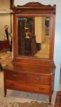 Oak dresser with beveled mirror, two drawers, matches lot #280 and 347; 42" w., 21" dia., 79" h. Oak dresser with beveled mirror, two drawers, matches lot #280 and 347; 42" w., 21" dia., 79" h.