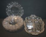 Set of seven 8" rosepoint plates and three compartment divided dish Set of seven 8" rosepoint plates and three compartment divided dish