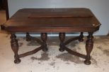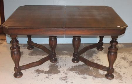 Walnut dining table with one leaf; 59" w., 45" dia., 31" h. ; matches previous lot; leaf 10" Walnut dining table with one leaf; 59" w., 45" dia., 31" h. ; matches previous lot; leaf 10"