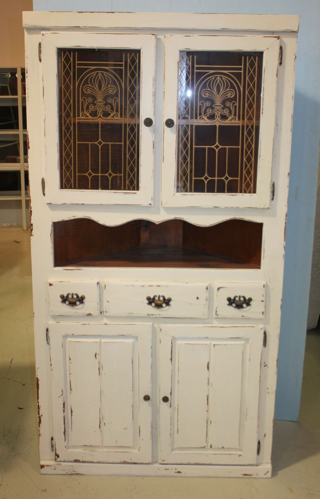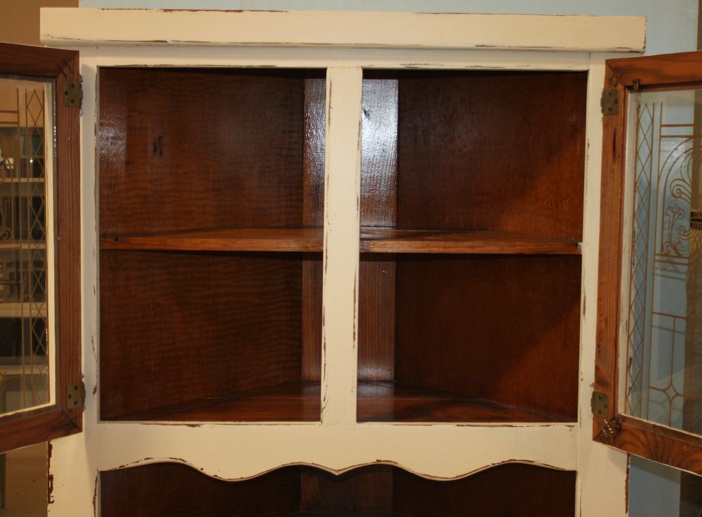 314 Hand Brushed Distressed Painted Antique White Corner Cabinet