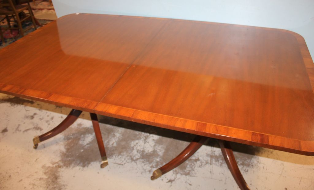 328 High End Regency Style Cross Banded Kittenger Dining Table