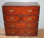 Two section, four drawers with brass corners and pulls; 39" w., 18" dia., 38" h. Two section, four drawers with brass corners and pulls; 39" w., 18" dia., 38" h.