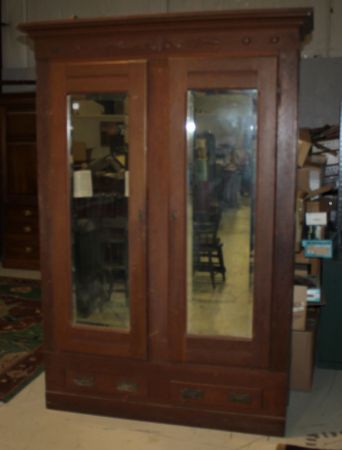 Beveled glass doors; 54" w., 18" d., 87" h. Beveled glass doors; 54" w., 18" d., 87" h.