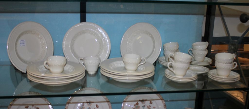 Wedgewood china "embossed Queens Ware" eleven soup bowls, eleven demitasse cups, twelve demitasse saucers, ashtray; 35 total pieces Wedgewood china "embossed Queens Ware" eleven soup bowls, eleven demitasse cups, twelve demitasse saucers, ashtray; 35 total pieces