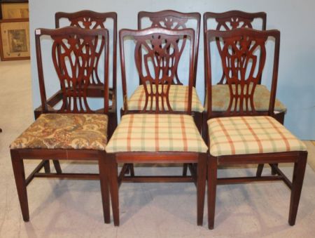 390 Set of Six Mahogany Open Carved Back Dining Chairs