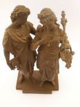 Ornate bronze courtship scene with man holding birdcage and bird sitting on woman's breast. -h. 13" x w. 9" Ornate bronze courtship scene with man holding birdcage and bird sitting on woman's breast. -h. 13" x w. 9"