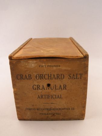 Tongue and groove salt box from Powers-Weightman-Rosengarten Company, Philadelphia. - h. 5 1/4" d. 9 1/2" Tongue and groove salt box from Powers-Weightman-Rosengarten Company, Philadelphia. - h. 5 1/4" d. 9 1/2"