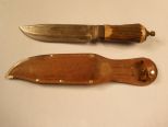 German Bowie Knife with what appears to be either bone or deer antler handle in leather case. - h. 10 1/2" German Bowie Knife with what appears to be either bone or deer antler handle in leather case. - h. 10 1/2"