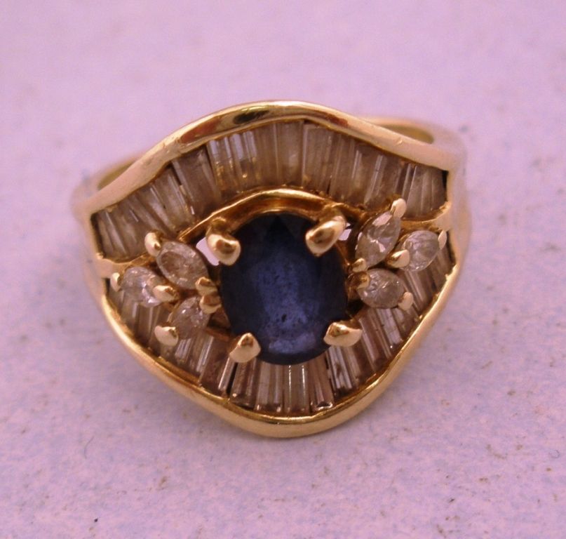 18 ct. white gold square slide contains sixteen princess cut medium blue .64 ct. Sapphires. Two four border mounting contains a total weight of .36 ct, six diamonds each corner. Two diamonds laid contains three princess cut diamonds with approximate wt. of .21 cfw. Gold weight is 9. Total weight is 1.21 ctw. 18 ct. white gold square slide contains sixteen princess cut medium blue .64 ct. Sapphires. Two four border mounting contains a total weight of .36 ct, six diamonds each corner. Two diamonds laid contains three princess cut diamonds with approximate wt. of .21 cfw. Gold weight is 9. Total weight is 1.21 ctw.