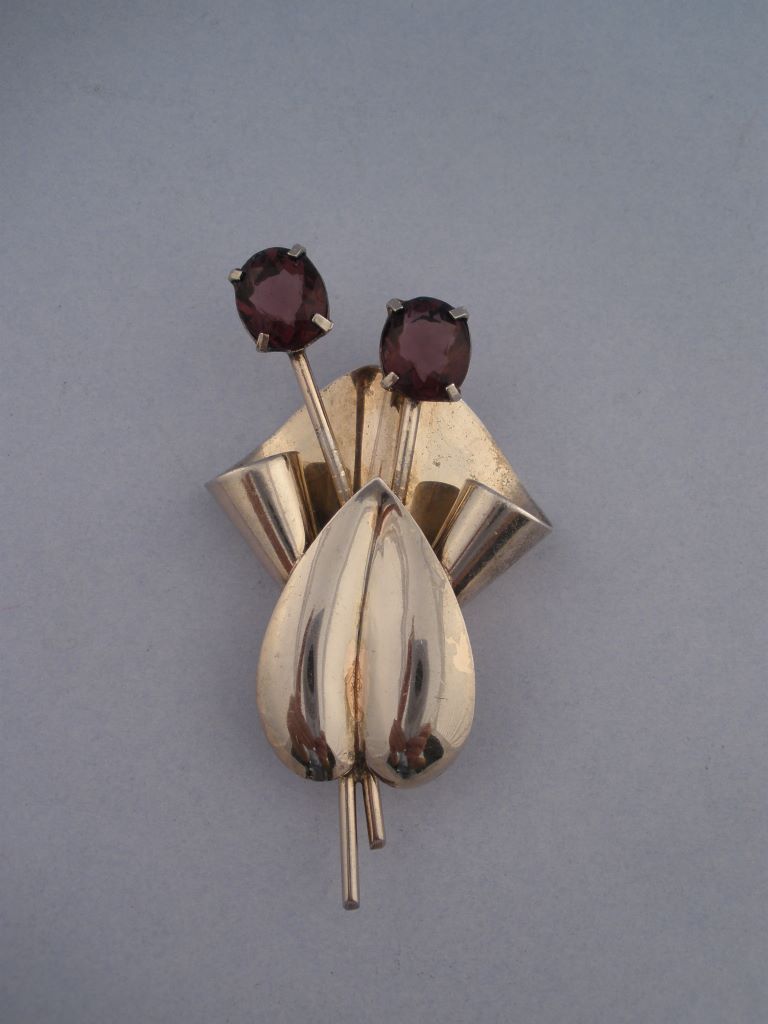 Very pretty Sterling Silver leaf design pen with double Amethyst stones. -h. 2 3/4" x w. 1 1/2" Very pretty Sterling Silver leaf design pen with double Amethyst stones. -h. 2 3/4" x w. 1 1/2"