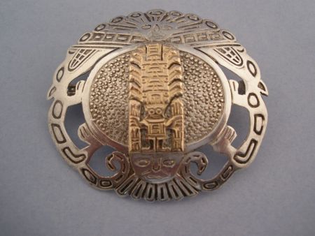 Nice Sterling Broach with raised Aztec symbols, also has loop to convert into necklace, h. 1 3/4" x w. 2" Nice Sterling Broach with raised Aztec symbols, also has loop to convert into necklace, h. 1 3/4" x w. 2"