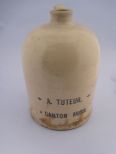 Old stoneware whiskey jug with A. Tuteur Canton, Miss stamped in blue on front. 11" x 7" Old stoneware whiskey jug with A. Tuteur Canton, Miss stamped in blue on front. 11" x 7"