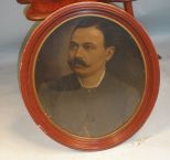 Old oval shaped picture frame with image of man with mustache. 20" T 17" W Old oval shaped picture frame with image of man with mustache. 20" T 17" W