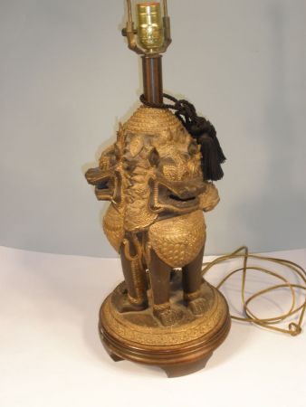 Brass Oriental Foo Dog Lamp on Wood Base. Four Foo Dogs joined together to form lamp. 25" T Brass Oriental Foo Dog Lamp on Wood Base. Four Foo Dogs joined together to form lamp. 25" T