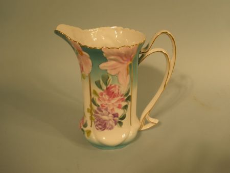 Beautiful Limoges Pitcher with floral pastel design and decorative handle. Marked Limoges, h. 9 1/2" x w. 9 1/4" Beautiful Limoges Pitcher with floral pastel design and decorative handle. Marked Limoges, h. 9 1/2" x w. 9 1/4"