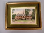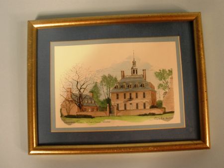 Framed Print "Governor's Palace Williamsburg, Virginia"- h. 6 1/2" x w. 9", Framed Print "Carter's Grove Williamsburg, Virginia".- h. 6 1/2" x w. 9", Framed Print "Wrec Building, College of William & Mary, Williamsburg, Virginia"- h. 6 1/2" x w. 9", and Framed Print "Raleigh Tavern, Williamsburg, Virginia".- h. 6 1/2" x w. 9". Each print is individually hand painted and no two are alike. Framed Print "Governor's Palace Williamsburg, Virginia"- h. 6 1/2" x w. 9", Framed Print "Carter's Grove Williamsburg, Virginia".- h. 6 1/2" x w. 9", Framed Print "Wrec Building, College of William & Mary, Williamsburg, Virginia"- h. 6 1/2" x w. 9", and Framed Print "Raleigh Tavern, Williamsburg, Virginia".- h. 6 1/2" x w. 9". Each print is individually hand painted and no two are alike.